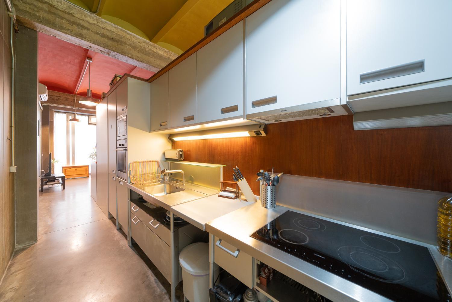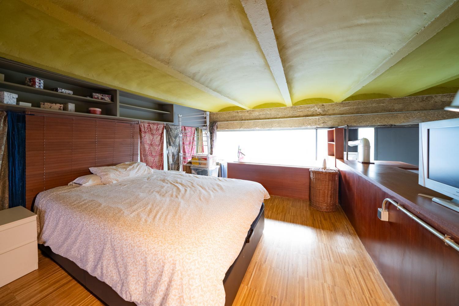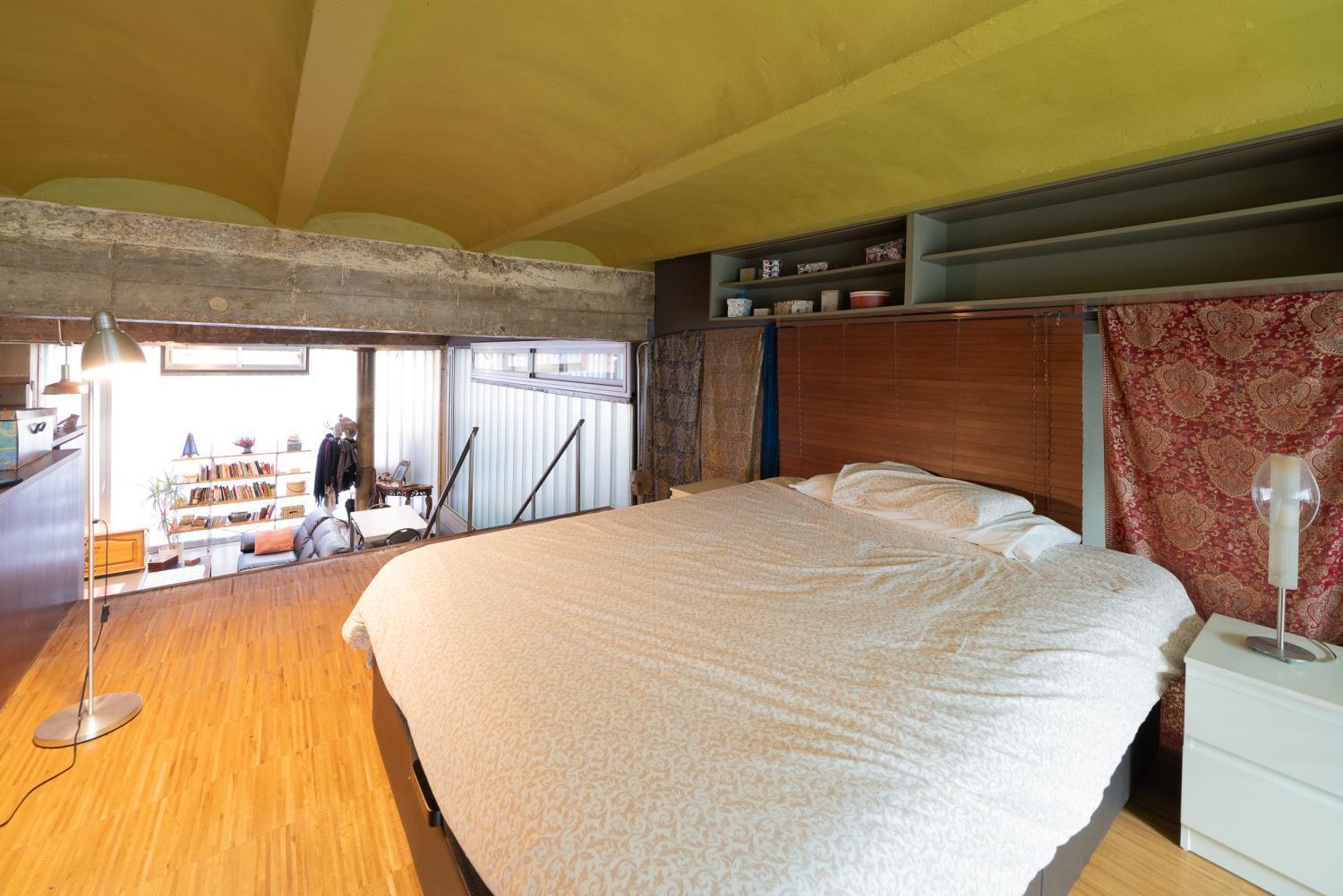 Estupendo loft dúplex con techos de 4m de altura, trastero y garaje en el edificio. Está situado en un edificio con vigilancia por cámaras, con una zona común de patio ajardinado central y abierta . Desde que se construyó, ha sido de un único propietario, que además lo ha utilizado poco. Cocina abierta de acero Siemens con todos los electrodomésticos de la misma marca. En la planta baja hay un dormitorio con baño incorporado, que dispone de ducha. Del salón, arranca una escalera que va al segundo dormitorio, abierto al salón, en el cual hay una bañera de hidromasaje. A parte del garaje en el mismo edificio, tiene un gimnasio comunitario equipado. Calefacción y agua caliente individual por gas. Aire acondicionado.