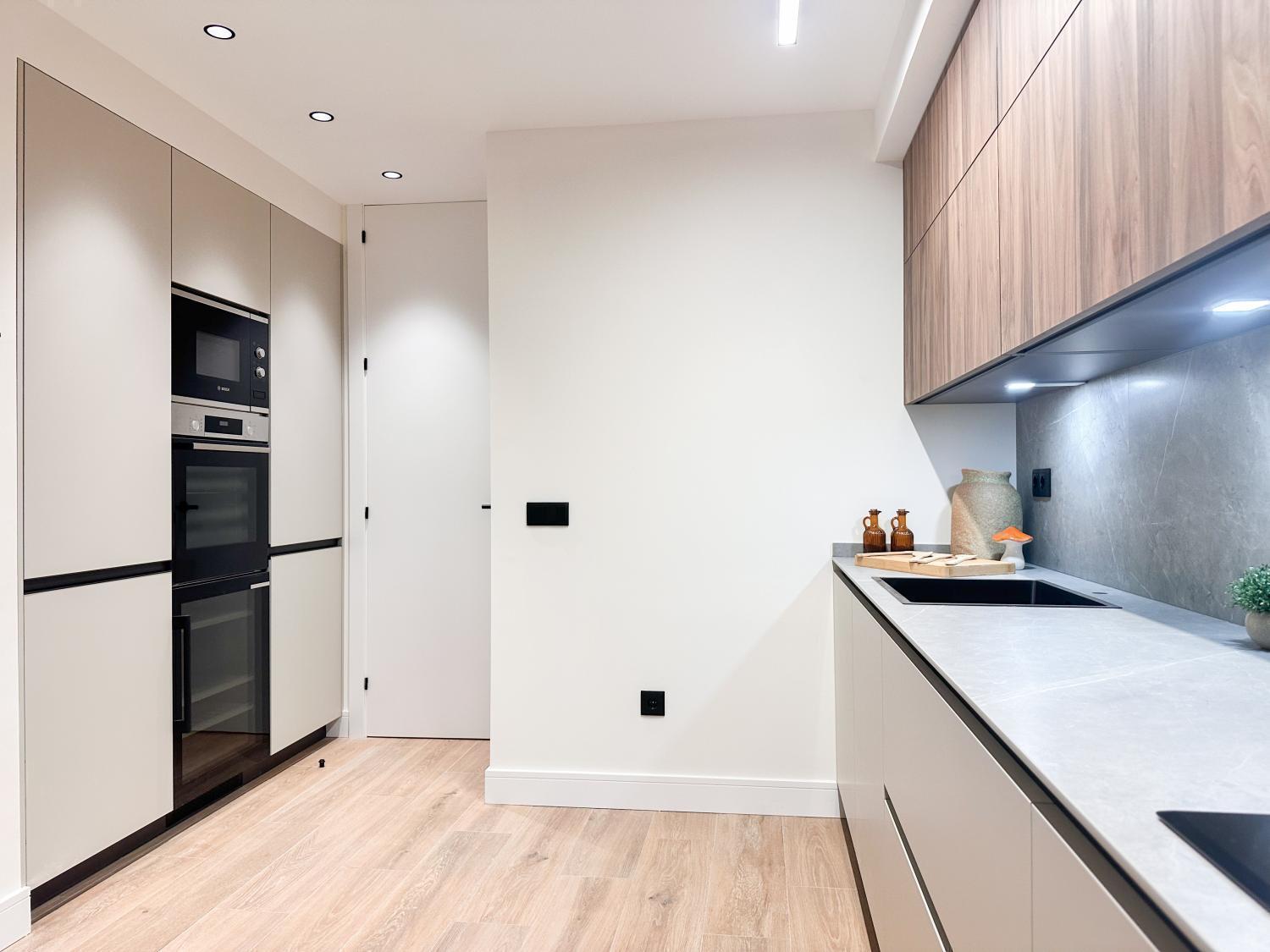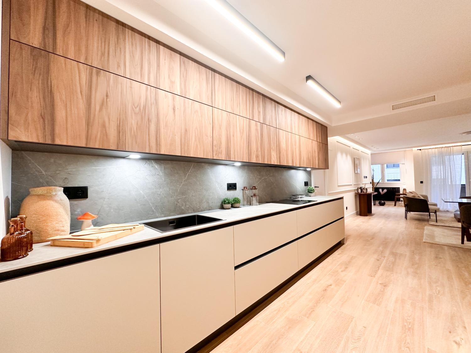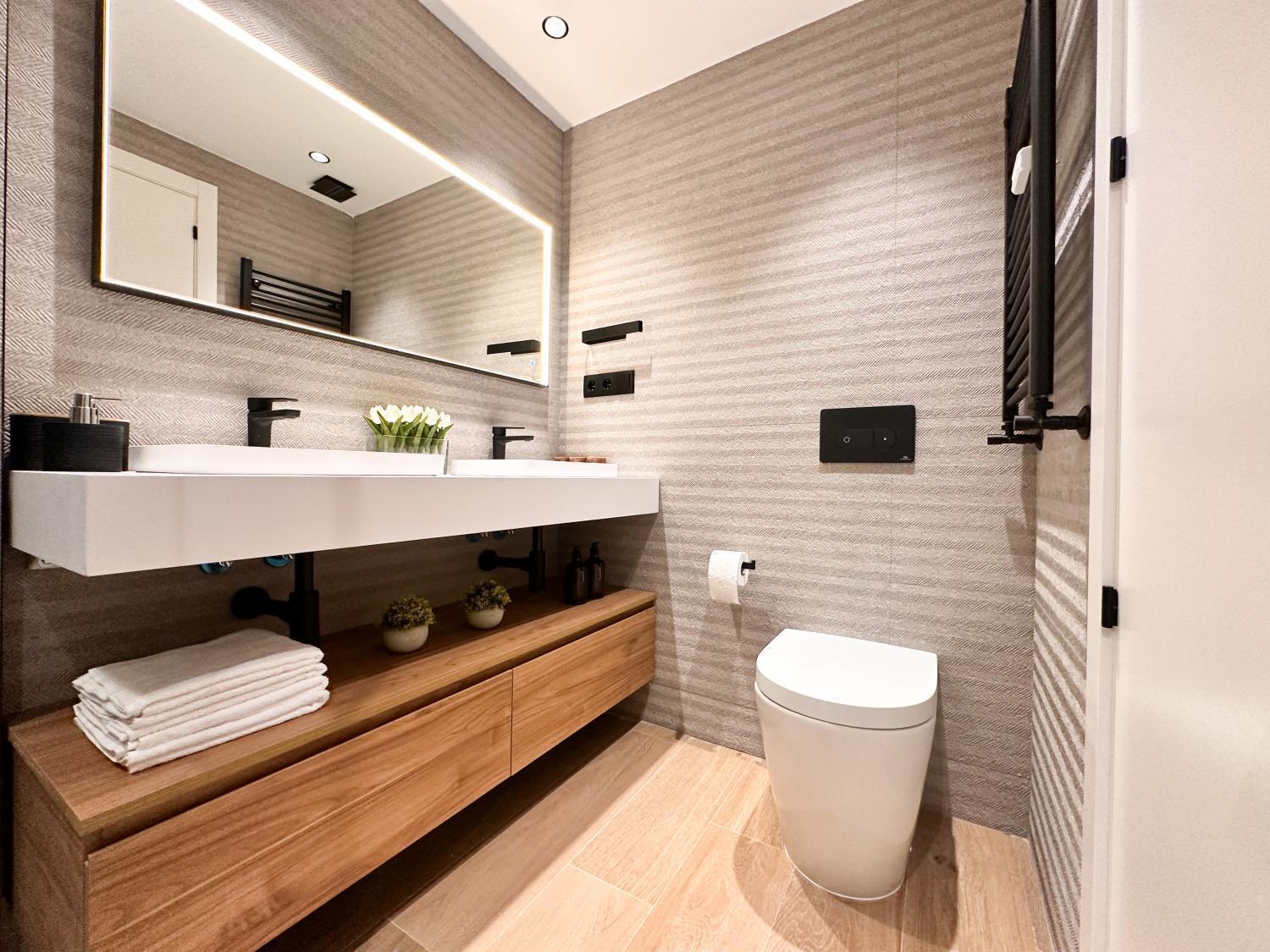 Precioso piso con buen salón comedor, pequeña terraza, 3 habitaciones con baño en suite y un aseo de cortesía. Cocina con muebles de gran calidad y electrodomésticos de gama alta. Zona de lavandería. Orientación sur. Una plaza de garaje en la finca. Portero en la finca. IBI: 1039€. Muebles opcionales por 25k.