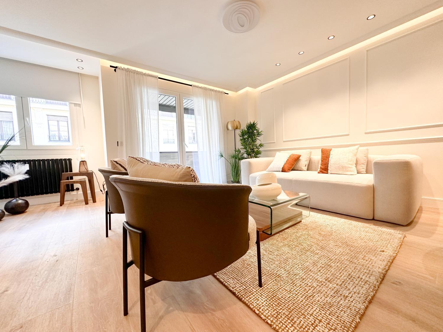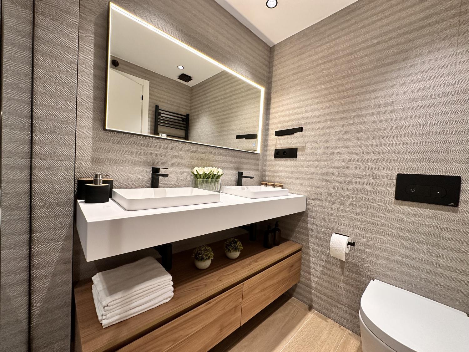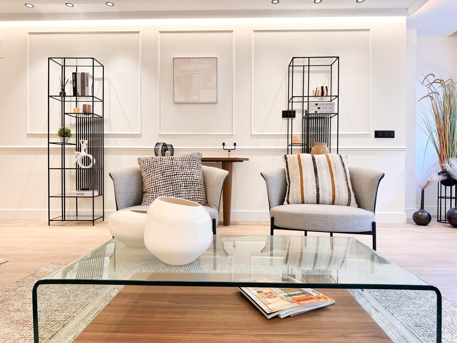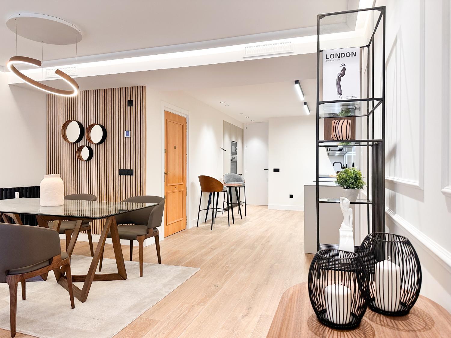 Precioso piso con buen salón comedor, pequeña terraza, 3 habitaciones con baño en suite y un aseo de cortesía. Cocina con muebles de gran calidad y electrodomésticos de gama alta. Zona de lavandería. Orientación sur. Una plaza de garaje en la finca. Portero en la finca. IBI: 1039€. Muebles opcionales por 25k.